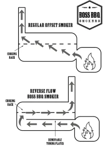 In a reverse flow smoker, the items cook from the bottom to the top due to the low heat emanating from the baffle plate, whereas in a horizontal offset smoker, the meat is smoked from the top down. The reverse flow smoker allows for more consistent temperature control, which is why many people prefer this style of barbecuing, especially those who are new to this method .